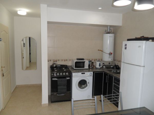 AMBIENTE UNICO, posee bajo mesada en melamina, bordes en aluminio, mesada en granito Rosa de Salto, espacio para lavarropas, termotanque 50 lts. Ventana balcon y balcon