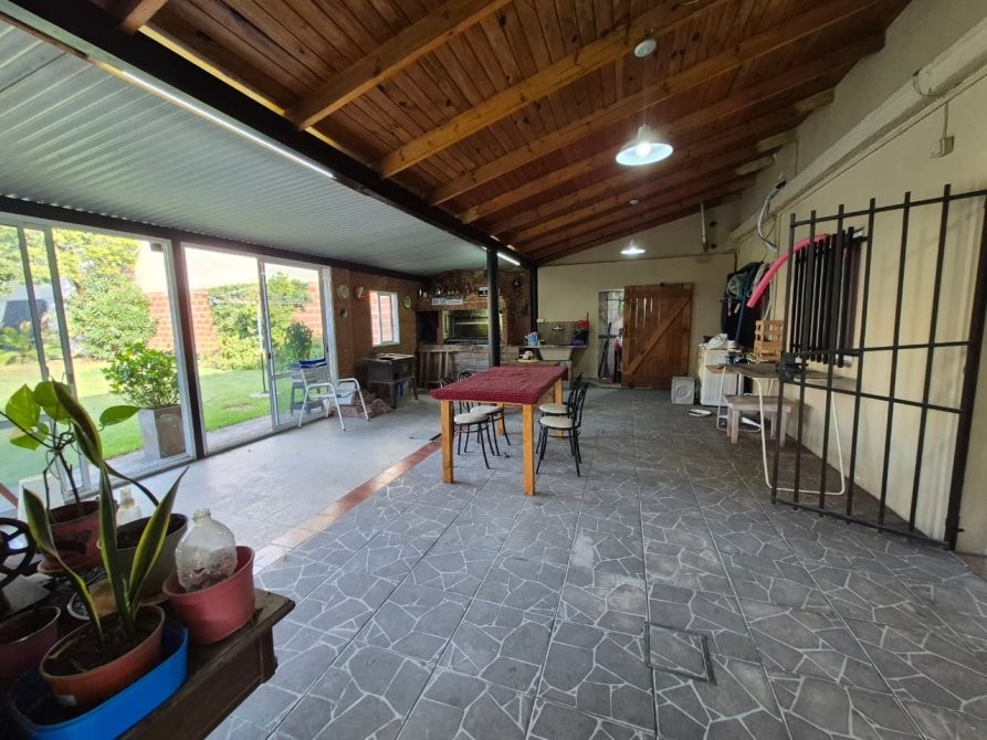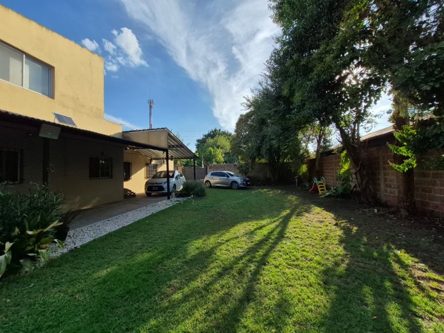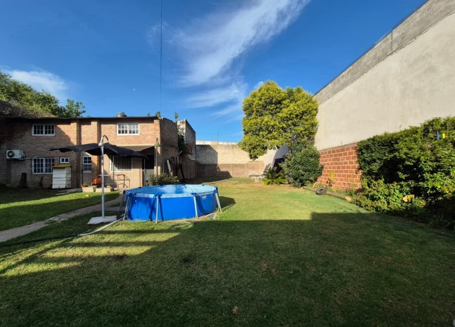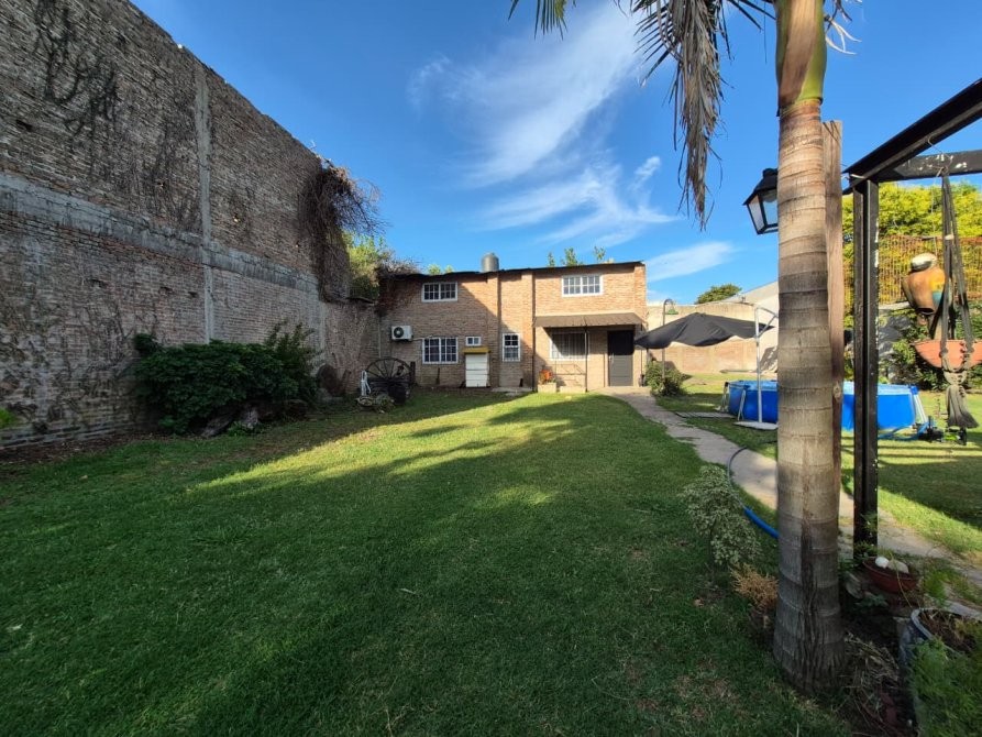 Sobre uno de los cuales se encuentra la vivienda principal que cuenta con recepcion que nos conduce a un hermoso y amplio living comedor. Pasillo conector a 3 habitaciones,dos de las cuales son muy comodas. La tercera que puede ser utilizada como escritorio o biblioteca posee escalera que da acceso a una cuarta dependencia (a la que se le puede dar multiples usos) ademas cuenta con dos ventanas que aportan luminosidad al ambiente. La cocina la encontramos despues del living con espacio para comedor diario, bajo mesada y alacena, ademas de ventanas que dan vistas al jardin. Puerta trasera con salida a una galeria cerrada por ventanas balcon y parrilla. En la misma hay un espacio que puede ser utilizado como lavadero.
