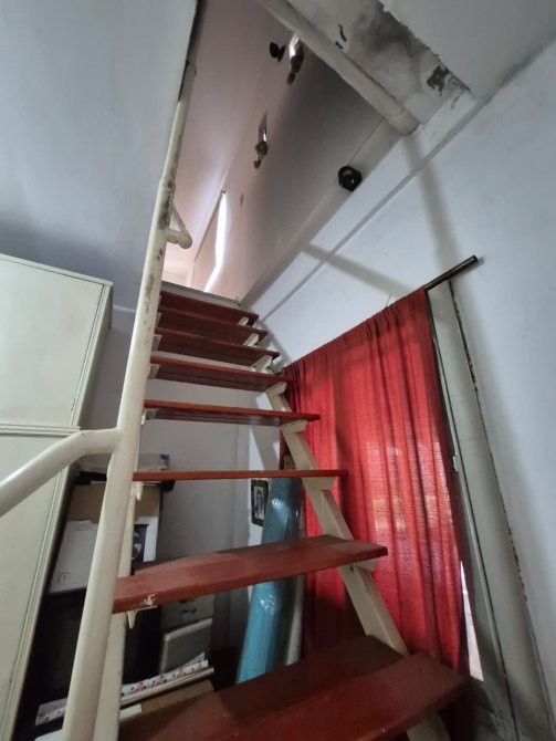 Sobre el otro lote en su parte posterior se encuentra un departamento de 2 ambientes, que posee cocina comedor integrados en un ambiente con alacena y bajo mesada, baño completo, habitacion y escaleras a entre piso el cual ocupa toda la superficie del departamento.