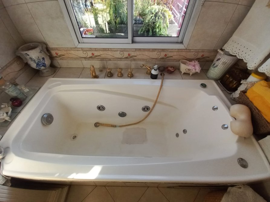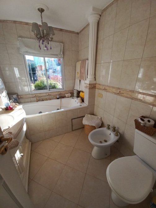 Baño con detalles de categoría, vanitory, sanitarios e hidromasaje. Ventana (ventilación e iluminación natural).