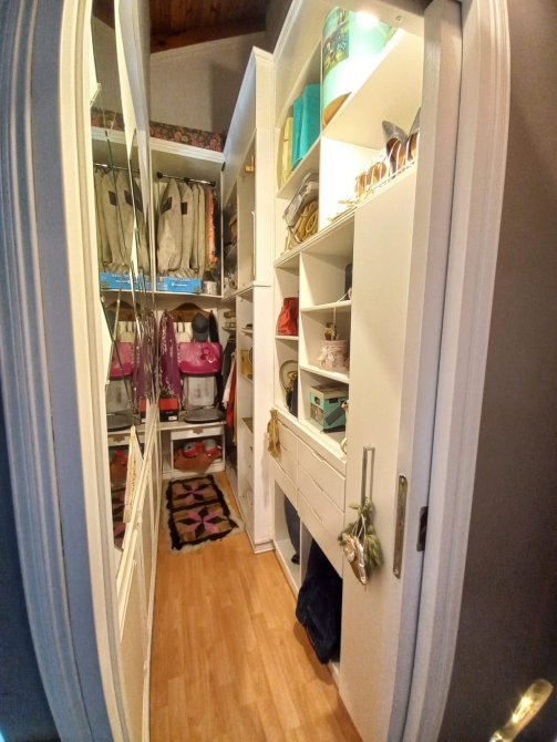 Dormitorio prinicipal al frente con pisos de parquet, vestidor y placard empotrado.